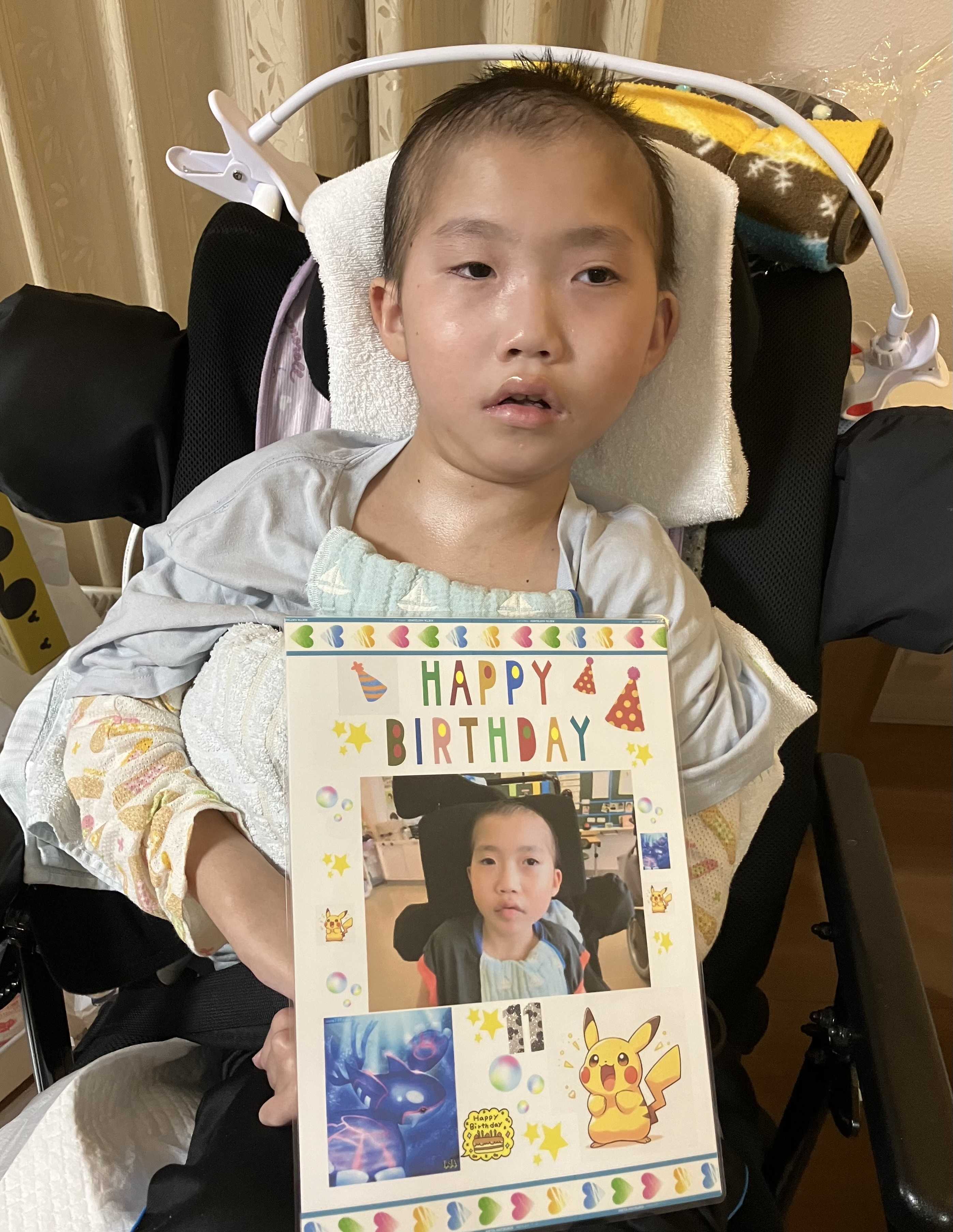 ~10歳長男🐻(小5)~ 昨日は、長男🐻の11歳のお誕生日でした🎂いろいろあったけど、おうちで一緒に過ごせるくらい落ち着いてくれたことを嬉しく思います😌そして昨日は学校🏫へ行って、午後から胃ろう交換と処方箋をもらいに受診🏥する予定でしたが…朝からびっくりするくらい痰の量が増えて、サクション頻回でした💦痰の色も緑っぽいので、何かに罹患して体の中で闘ってるご様子の長男🐻…そのため午前中は学校🏫をお休みして、午後からは受診のため病院🏥へ行ってきました。痰は増えましたが、発熱はないためひとまず経過を見ることになりました👀発熱があるようならまた受診🏥します。受診🏥では、胃ろう交換をして、1ヶ月分のお薬の処方箋や物品をもらい、日本脳炎のワクチンも打ってきました。おうちでは、排痰を頑張って、悪化しないように努めます💪函館では、コロナやインフル、マイコプラズマなどいろいろ流行ってるのでソワソワする💦今日はおうちで様子を見ます🙏