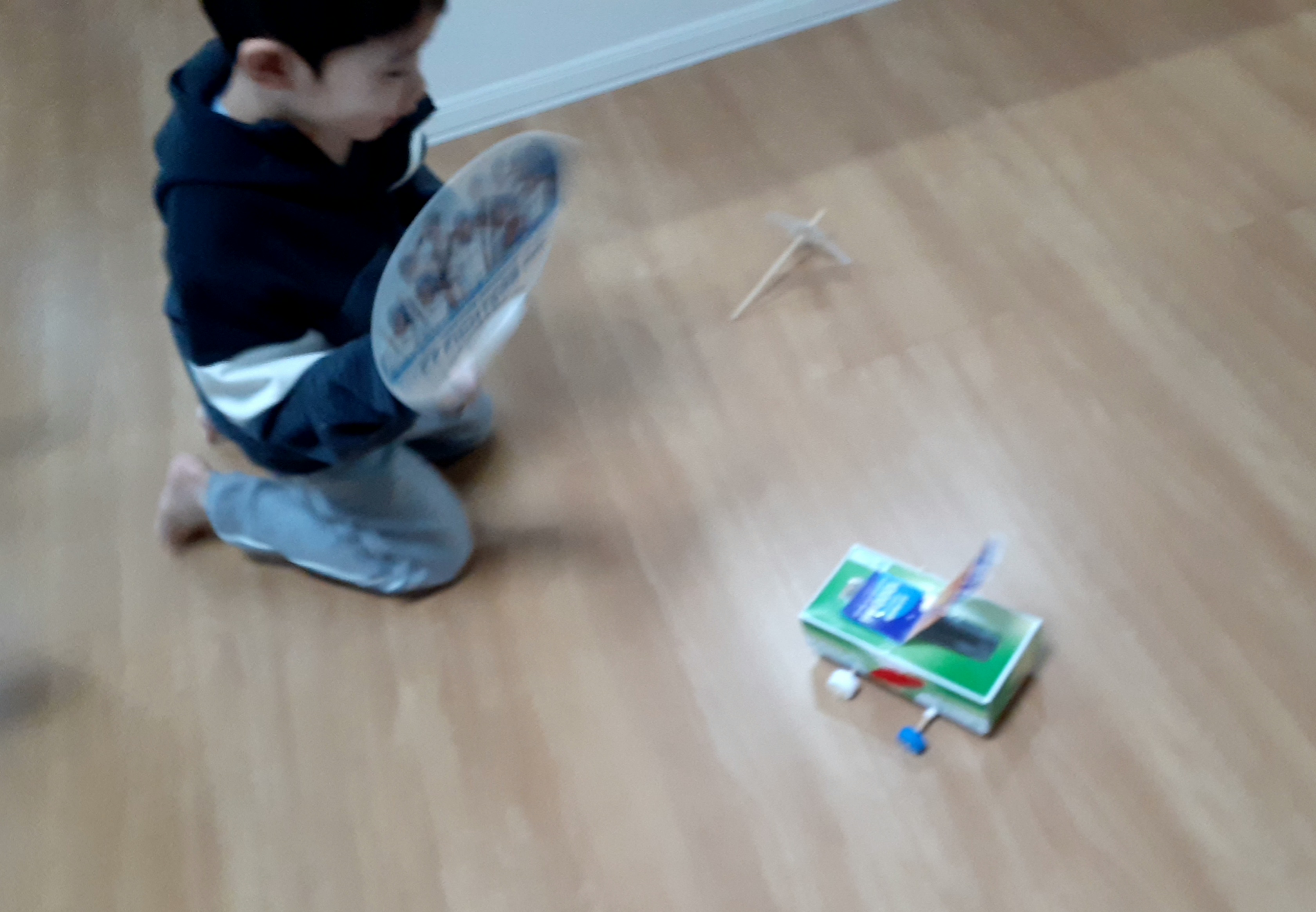 ↓うちわで扇いで走る車🚗を作りたかったようです😊