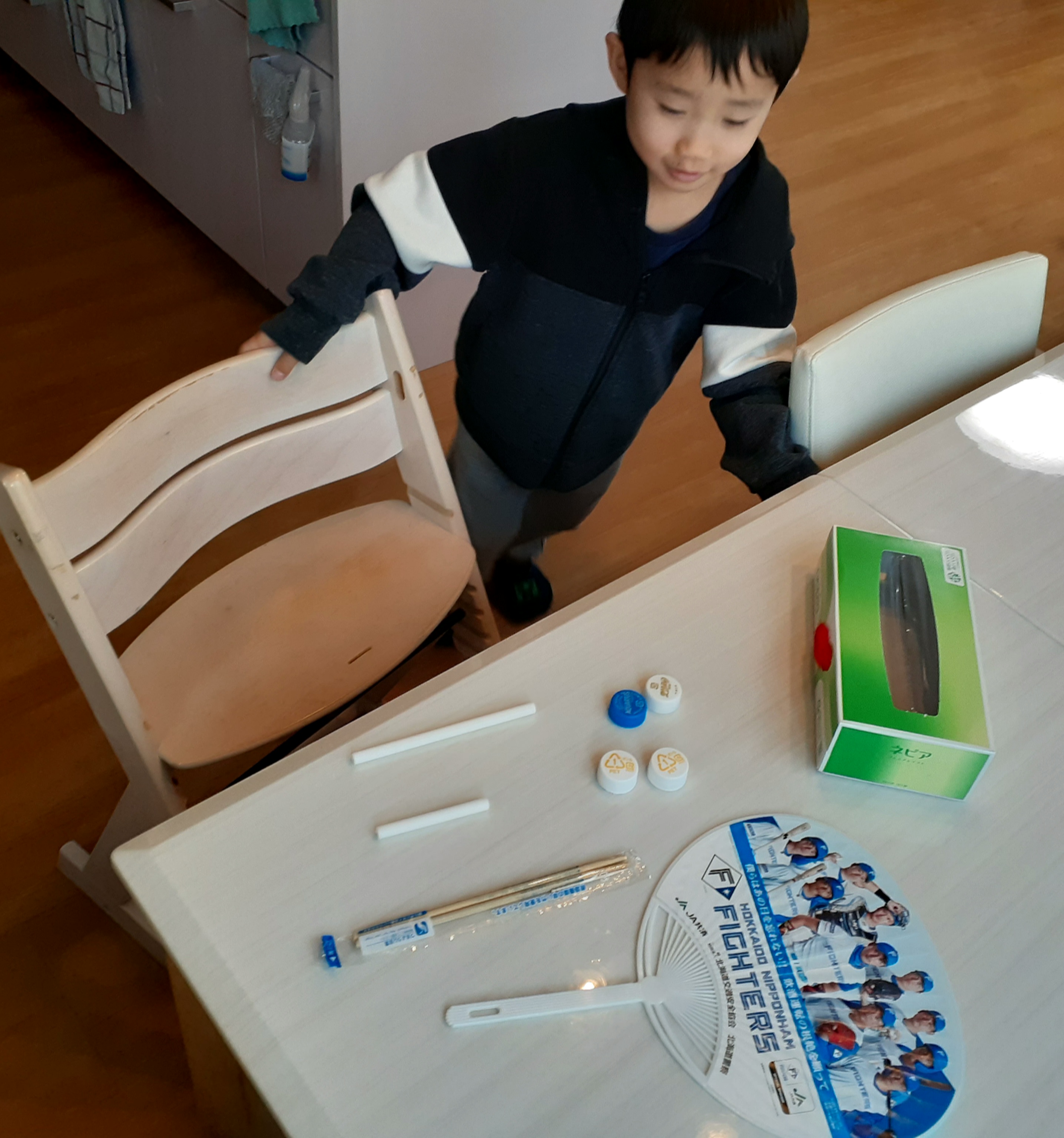 ↓次男🐒「ティシュのカラと割りばしとストローと