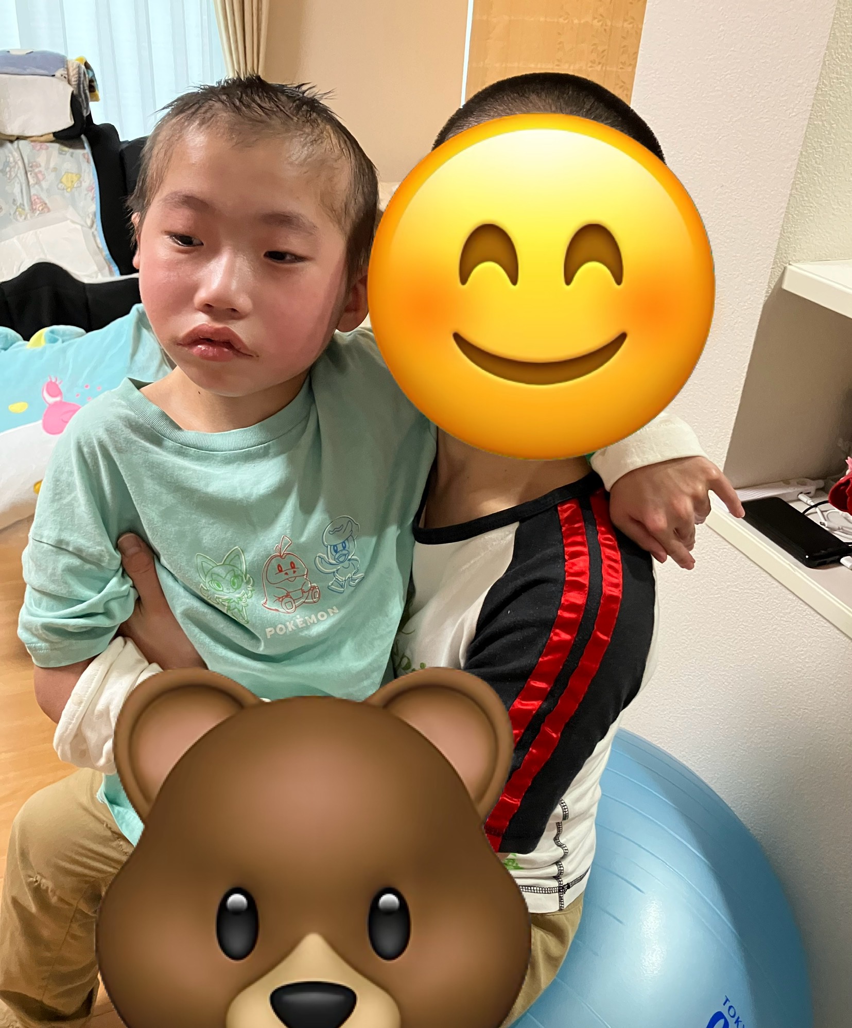 出発前に次男🐒にいたずらされる長男🐻(笑)