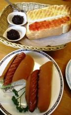 モーニングは、ジャムトースト (Cさんはバター) & おぐら あん。