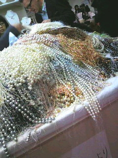 今日は仕事でIJT(国際宝飾展)に行ってきましたIJTとは年に1度開催される日本最大のジュエリー展示会ですジュエリーのベストドレッサー授賞式もここでやるんですよ~特別枠として、今年はイ・ビョンホンが来たみたいあとはベッキーとか鳩山首相の奥サマとか。それと、ジュエリー好きの芸能人がうようよ買いに来てます撮影禁止なんですが、こっそりと・・これはパールの卸売り的な。。もちろんイミテーションではなく、アコヤとか本物の真珠一本●百円くらいから売ってるんですひゃーーーーーー安いでっかい隕石が展示してあったので、なんかパワーがありそうと思って触ってきましたww隕石 913,500円インドとかアフリカのパビリオンはもう凄いのなんのって目も眩むほどのキラキラすっごい大きい会場(なんと東京ドームの4倍)だから5時間くらい立ちっぱで、あーーー疲れた来週、日本のジュエリーの産地・甲府に出張行ってきますー今日はもう早く寝ますおやすみなさい
