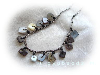 天然素材シェルをチェーンに繋げ、揺れる感じに仕上げたネックレス...セットで使えるブレスも作りましたので、今度こちらにアップしますね☆サイズは42~47cm。Shop販売価格 3,150円 (税込み)このアクセサリーはLove Four Shopで販売しています...←応援クリックお願いします♪