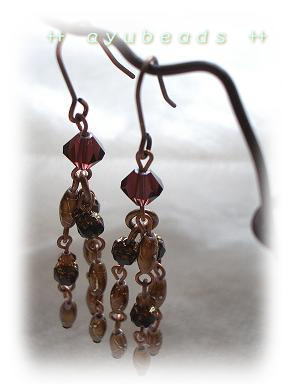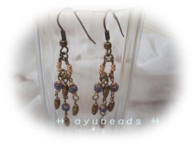 スワロフスキーとチェコダブルフェイスカット、ライス形のbeadsを使ったピアスです。全体的なカラーはブラウン系。(チェコダブルフェイスカットはブラウン×ブラックのbeadsです)飾り部分の長さは、いちばん長い部分で約4.5cmです。Shop販売価格 1,575円 (税込み)オシャレをするのが楽しい季節です。洋服に合わせて、アクセサリーも楽しんで下さいね☆ayubeadsはLove Four Shopで販売しています...←応援クリックお願いします♪