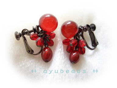 今回はイヤリング...深紅の色に統一し、beadsの形や大きさで表現してみました。パーティシーンにも活躍できそうです^^飾り部分の長さは約1.5cmです。Shop販売価格 1,890円 (税込み)このアクセサリーはLove Four Shopで販売しています...←応援クリックお願いします♪