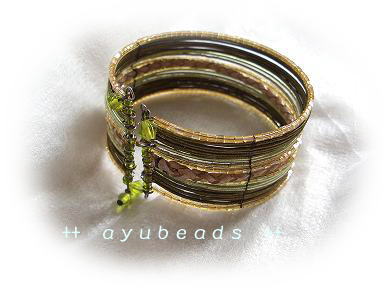 たくさんのワイヤーを筒状にしてブレスにしました。中央にはレザーを入れ、それぞれ質感を変えてみました。パコッてはめるブレスです^^セットで使えるネックレスも作りますのでお楽しみに...サイズ約19cmです。Shop販売価格 2,940円 (税込み)ayubeadsはLove Four Shopで販売しています☆←応援クリックお願いします♪