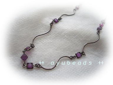 パープル系のピンク...S字のパーツを組み合わせ少し控えめなネックレスです^^S字のパーツが鎖骨のあたりでクネクネ(表現が下手ですが...)っとした感じが可愛らしさをかもし出している??控えめなので他のアクセサリーと重ね付けもありです^^サイズは42~47cm。スワロフスキービーズも使用しています。Shop販売価格 1,890円 (税込み)このアクセサリーはLove Four Shopで販売しています...←応援クリックお願いします♪