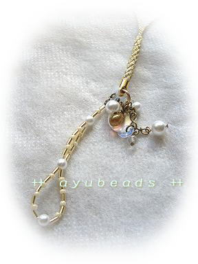 ストラップのゴールドカラーに、スワロフスキーのホワイトパールを組み合わせました。その他にスパンコール、シェル...を使って、ジャラジャラに☆アクセサリーの製作は、金具の色も重要になります。いつもは最後に金具の色を決めることが多いのですが、今回はストラップの色に合わせて作ってみました。Shop販売価格 1,365円 (税込み)ayubeadsはLove Four Shopで販売しています☆↑応援クリックお願いします♪→