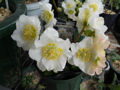 昨日も、今日も大変寒くって雪がちらほらと降って積もる程ではありませんが、本当に寒いです。北の方面の方はまだ3日程は雪の積雪に注意して下さいね暑いのもイヤですが、寒いのはもっとイヤですね。歌にもあるように『ネコは炬燵で丸くなる』と一緒です。寒い所の方に笑われそうですが、本当に段々と辛くなりますよ家のクリスマスローズも、この間載せたお花が咲いただけで蕾がじーと固まったままで伸びる気配ナシ家にもあるのですが、こんなには咲かないので購入しました。とっても綺麗で可愛いですよ 原種ニゲルの一代交配種のゴールド マリーです。ドイツで育種されたようです。大輪のバラ咲きのお花ですとっても綺麗で豪華なお花で少し香りがあるように思います寄せ植えにすれば、とっても綺麗な鉢植えが出来るでしょうね