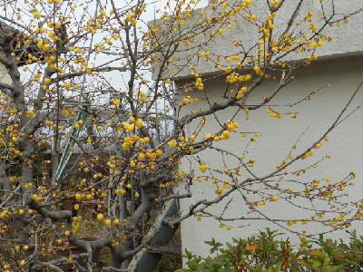 今日はどうにかいいお天気にでもお昼から風が出てきました。。。風が出ると骨身に浸みて寒く感じられますね。何時もクリスマスローズばかりだとつまりませんから、今日は元気の出る、黄色のお花が咲きます木々を集めました 昨年、咲くのが遅かったのでいま満開のロウバイですお正月前に5人程『下さい』って持って帰られた方がいます。毎年の事で2本づつ差し上げていますよ。切る時には『来年も咲いてね』ってお願いしますよ。まだ、いい香りしますよ家の入り口にあります柊南天です。このお花は毎年12月には咲いていますよ。まだ硬い蕾です。普通の柊より、葉っぱ硬くって凄く痛いです今年は一本にしかお花が付いていません。。。寂しい此方は年明けて、最初に咲くマンサクです。まだ3~4輪しか咲いてませんが、これも黄色のお花ですまた、満開に咲いてきましたら載せますね