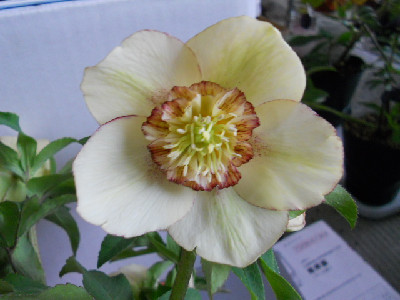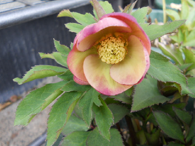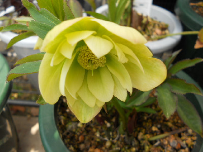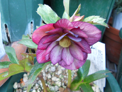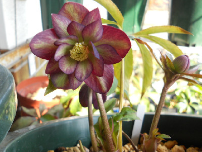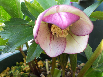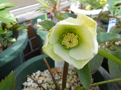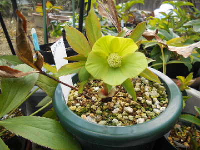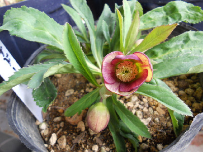今日はどうにかお天気ですが、最高温度は余り高くありません。毎日クリスマスローズばかりではって思うのですが、今日は可笑しいお花ばかりです庭に出て色んな所を見ていますし、草も生えているけど抜くには寒い花壇も模様替えしたいけど、それには若くないし家族はお花等、興味無し。若い者は『全部切ったり、抜いたりしてな~~~にも無くすれば』って言うけれど外に緑やお花が無いとねぇ外へ出て見つけましたよ、変なお花 タグはsdライトピンクピコティとあります。○○○交配のsdですが、ピンクなんて程遠い白色でしょう。苗から育てた初開花ですが、割りとYさんのはタグと違うのが多いこの2つのお花は○○ーオークでの交配苗でしたが、可笑しいでしょう。2年程育てましたが、笑うに笑えません全部お嫁に出します開花株を購入するのが一番ですが、開花株は高いですものねぇ。もうクリローも下火になりつつ、でもわたしはスキなのですよ