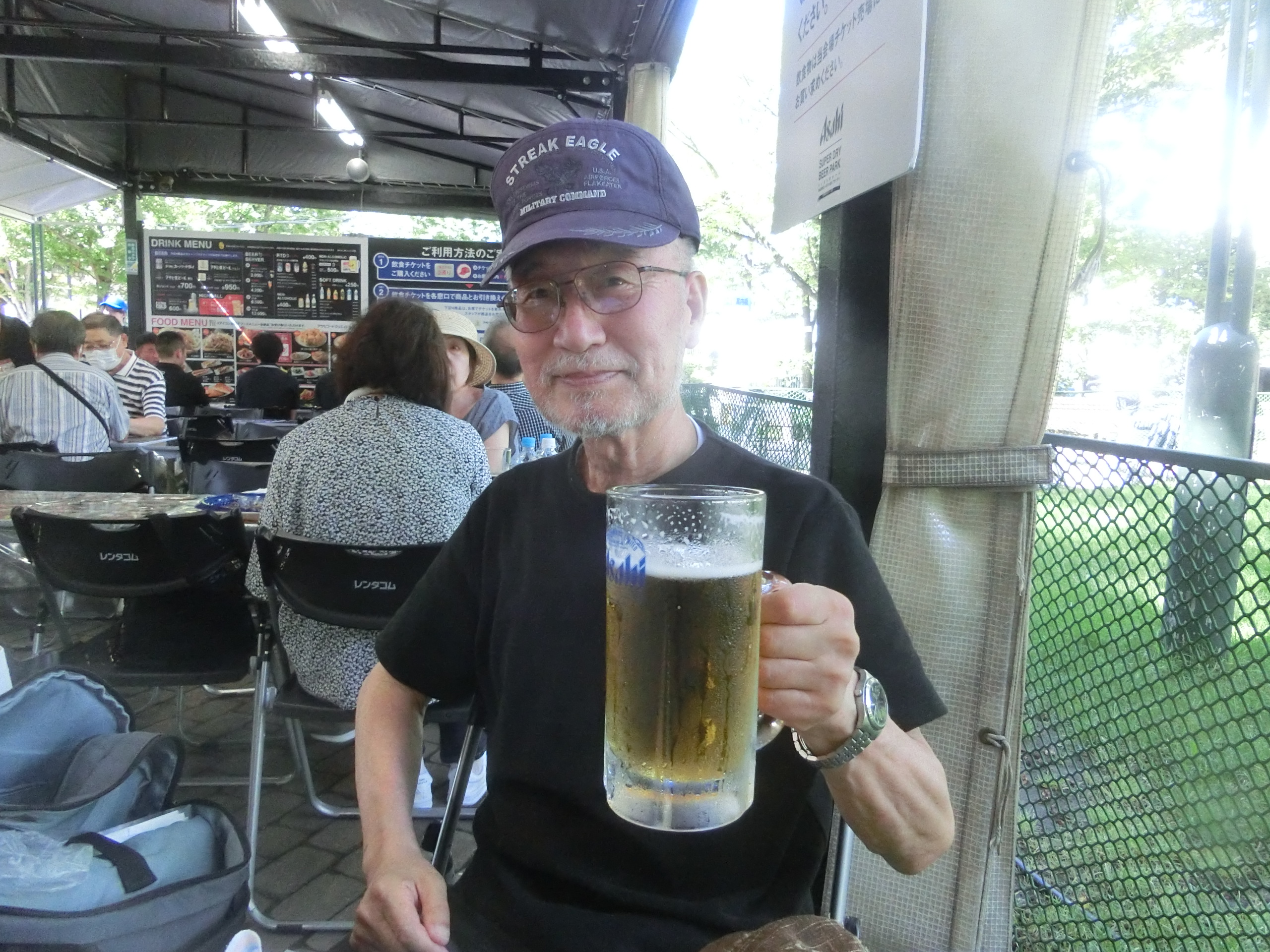 札幌大通りビアガーデンで、ビールを飲む暑い日が続く。暑いと言っても、東京の暑さには敵わない。札幌は、7月21日から8月16日までの間、大通りのビアガーデンである。大通り5丁目から9丁目の1丁目ごとに、サントリー、アサヒ、キリン、サッポロ、外国の物を据える。自分は、永らくアサヒに行っている。20歳代の頃、毎日飲んでいた頃もあった。その頃は、屋根が無く、雨に濡れて飲んでいた。今は、1回しか飲みに行ってない。今、大びんは950円だ、高いよな。味も、ちょっと落ちたようだ。午後2時から、大びんを2杯飲んだ。昼間から、平日で飲んでいる人が大勢いる。自分久しぶりの(5月ぶり)、48年来の友人”すすきの”で、ちょっと飲む。左はニッカウヰスキーの看板、右は新しいビルが建っている。半年ぶりの”串鳥”は、3か所を訪ねて店が無くなっていた。この頃は、串鳥がいいと思うのに。しかたがなく、おでん屋で飲んで、かなり酔っぱらったよ。まだ明るいのに。