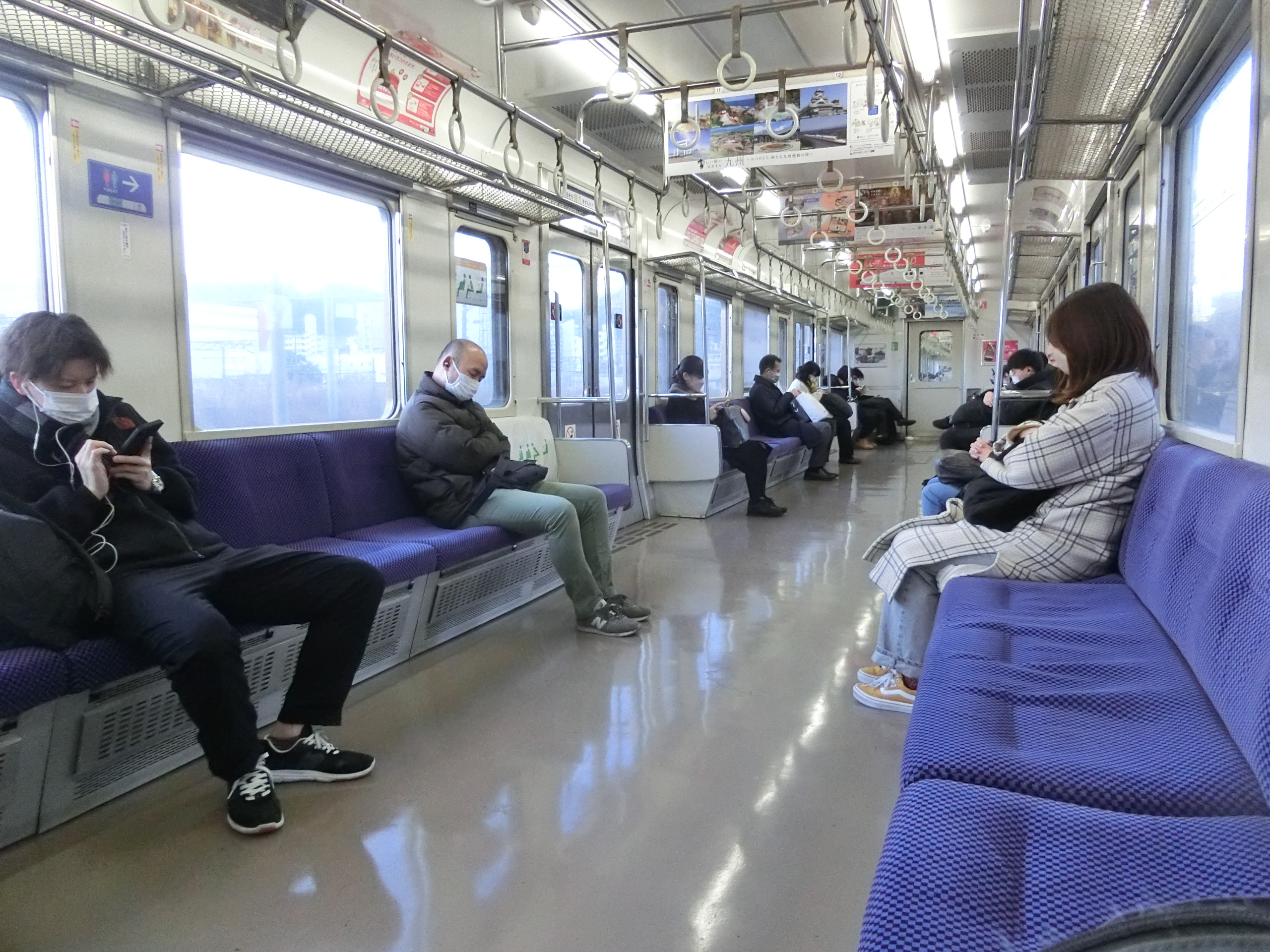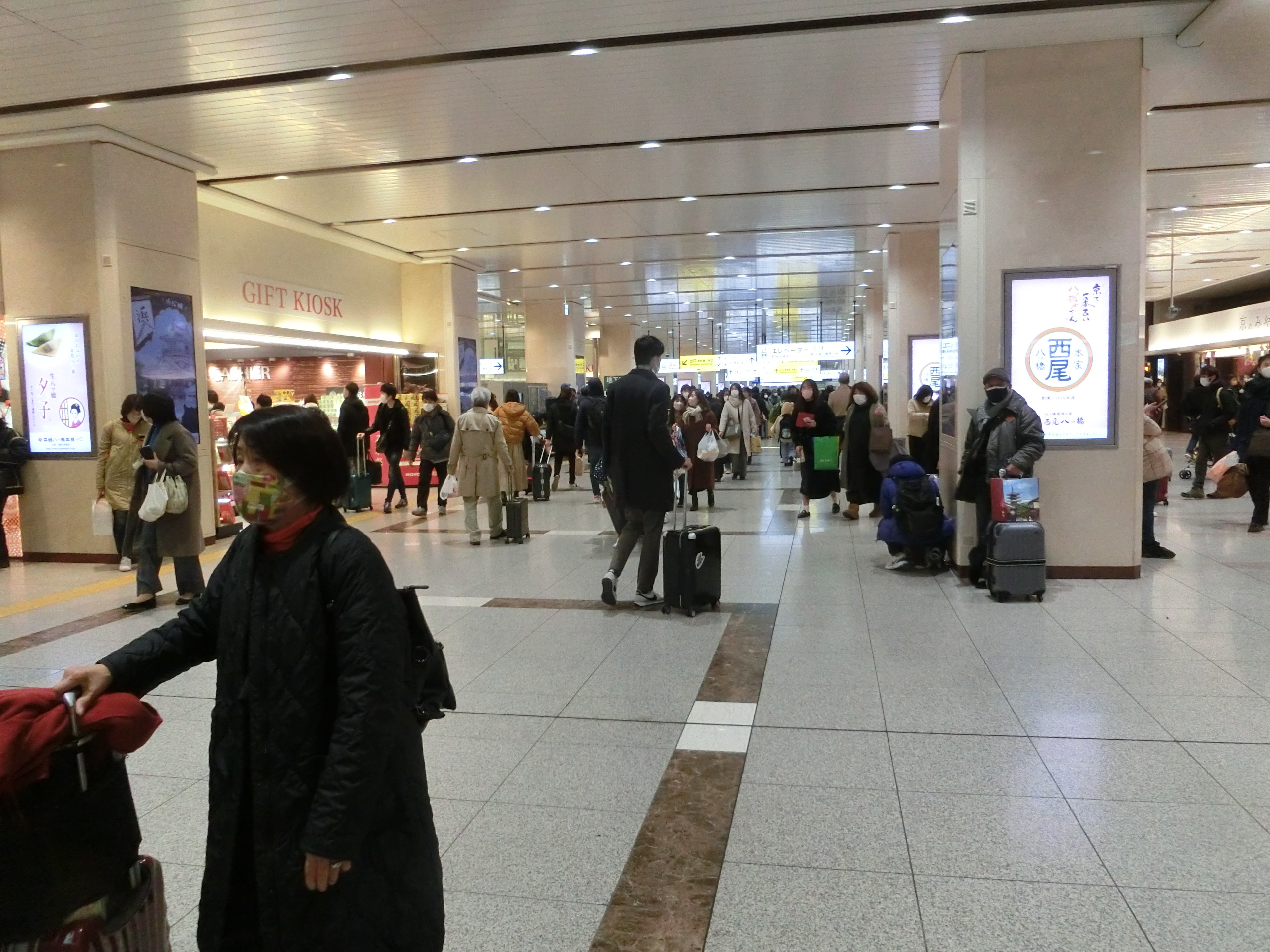 新幹線は満員で、席は狭くて隣の女性もすぐ狭まってくる。