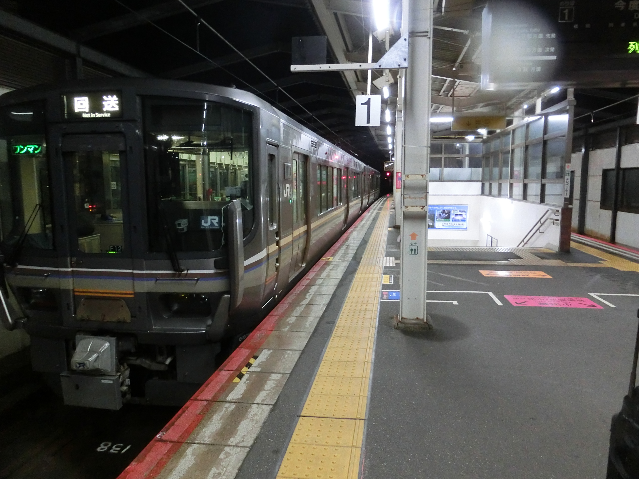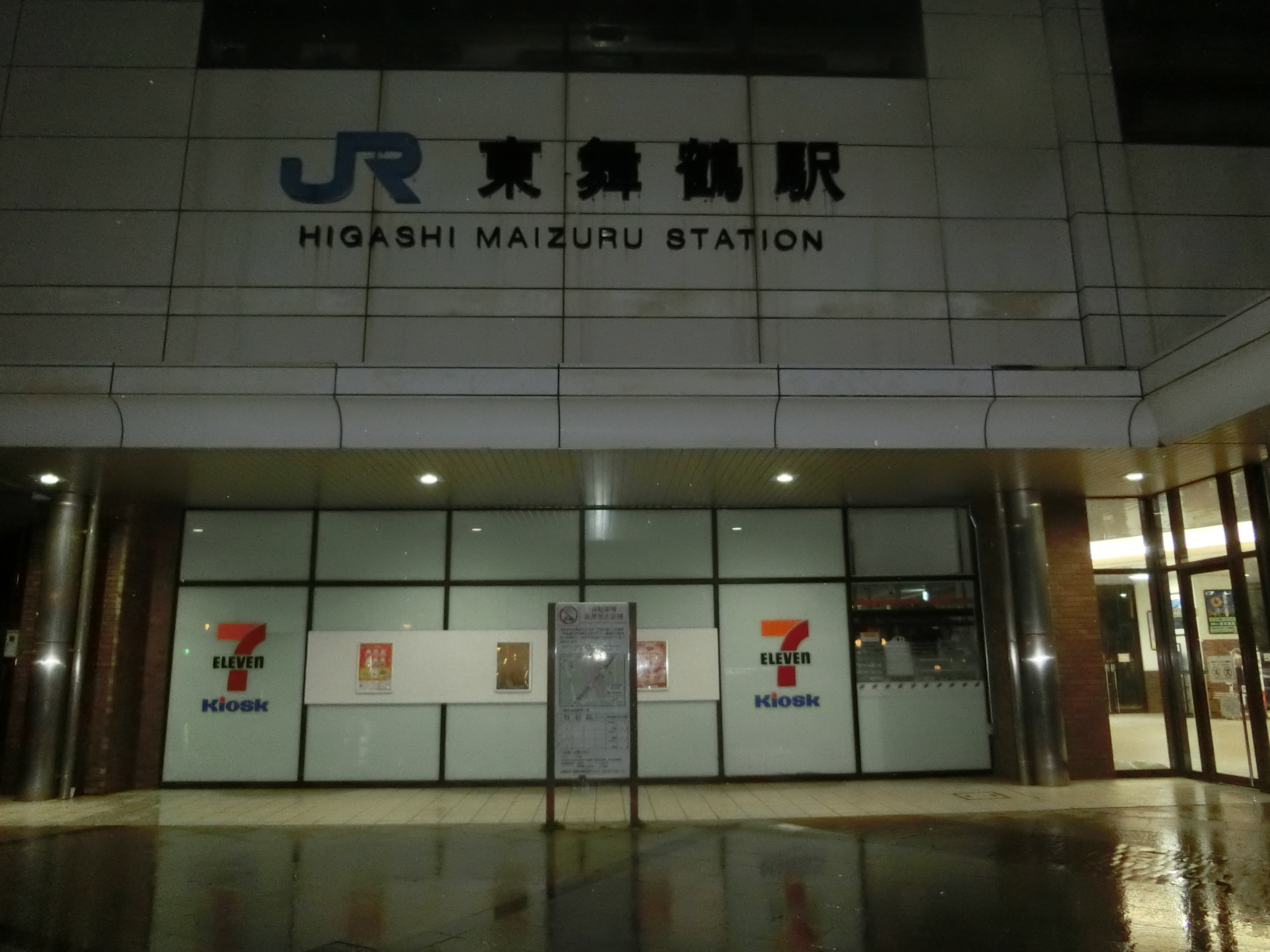 京都に1時間半いて、19時13分発園部駅に乗り、綾部駅を抜けて、21時55分に東舞鶴駅に着く。