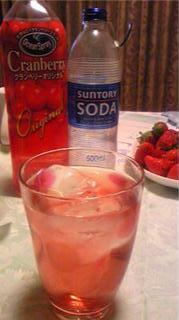 キレイな色焼酎をクランベリージュースとクラブソーダで割ったもの。母が買ってきたイチゴちゃん達。