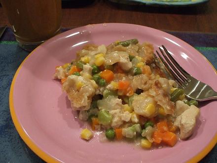 今日の夕食はチキンポットパイお皿に盛ったから形が崩れちゃったけど美味しかったちなみに私は玉ねぎとチキンを切っただけです。