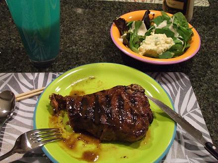 今日の夕食ステーキおっきなおっきなステーキ。食べ始めてから写真を撮っていないことに気付き、慌てて写真におさめました今日、私が作ったものはサラダだけ。