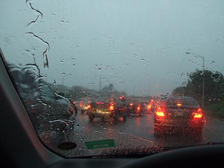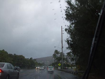 物凄い雨が降っていました雷もピカピカゴロゴロとすぐ真上で鳴り響きいつもそんなに混まない時間なのにこんな渋滞私は車で学校まで行ってるからまだマシな方だと思うけど、それでも駐車場から教室に向かう間だけで結構濡れたわw全身びしょ濡れで来た人もいたけどきっとハワイの街はこんなに雨が降ることを想定してないんでしょうね。排水溝がいっぱいになって、噴水のように水が噴出してましたもん。ビーチサンダルで学校行って良かった