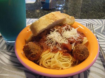 4時間かかりましたミートボールスパゲティー&ガーリックトースト今日の夕食です。そのために昼の12時からソース作り。時間をかけただけあり、美味しかったです♪Out standing