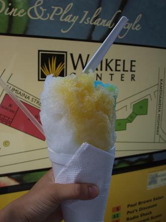 ということで、今日はワイケレアウトレットショッピングモールへ駐車場メッチャ混んでたよなんとか車を停め、色んなお店を見て回る。でも・・・欲しい物ないわw今日は天気も良く暑かったので、シャイブアイスを食べましたこのフワッとした氷の食感は日本にはないんだよね~どうやったらこんなんなるのか??シロップはブルーハワイ・パイナップル・ココナッツです。結局、Kマートでお土産を買って、家に帰るんで、残っていたマッシュポテトを昨日に引き続き使って夕食にポテトパイを作る。パイを焼いてる間にプールで泳いだので出来上がる頃にはお腹ペコペコ。で、ガッツイてしまい写真を撮り忘れましたアハハ・・・