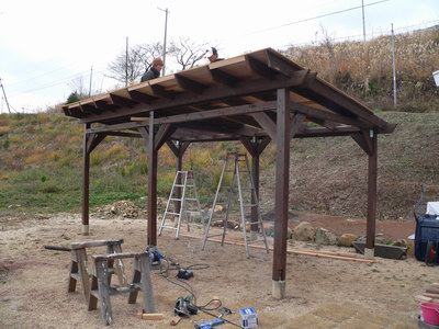 昨日は近所の忘年会でシコタマ飲ませて頂きましたみなさんお疲れ様でした今回は、いつもお世話になっているBESSのスタッフさんも参加していただきました来てくれてありがとう又、来年も声を掛けるけぇ、来てちょうだいよ今日は、朝から近所の小屋?アズマヤ?作りで出張大工に何としても、今日ある程度完成に向けて勝負を賭けたかったので会話もなく、黙々と作業何とか屋根のコンパネ張りまで終了して僕の出張大工はここまであとはオーナーさん任せたっ最終仕上げ宜しくね~アスファルトシングル(屋根材)を張ってちょ~だいなんとか、良いものが出来たぞっ次の大工依頼は「三人掛けガーデンベンチ製作」でし頑張って良い物をつくるぞ依頼主さん待っててね僕が出張大工に行っている時、奥チャマとあずきは散歩へGOまぁ、いつも通りの散歩です出張大工も終了し、スイーツが食べたくなったのでお隣のカフェへGOその名は「ログカフェまいも」ここも、ログハウスなんです(BESS製)我が家とは違うタイプでカントリーカットログハウスなんですお店の看板から、店内の小物類のほとんどがマスターお手製かわいい雰囲気のお店で、マスターと社長(奥さん)はいつも優しい笑顔で迎えてくれますスイ~ツも旨いっスよ今、僕はまいものチョコレートケーキとスイートポテトにハマっていますマスターいつも、美味しいスイーツありがとね今日もごっつぁんでした今日も見てくれて有難う応援クリック宜しくです