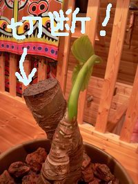とうとう、12月に入っちゃいました2009年も残り一ヶ月ですが、今月は何かとイベントとかもあり、忙しいから正月もあっちゅう間じゃろうなぁ今日は、元気の無い観葉植物の治療を行いました患者名「クワズイモ」さん 我が家へ来て1年半。病名 茎が腐ってきてるんじゃぁないの?病執刀医は、奥チャマ。腐っている茎を取り除いて、生きている部位を別の鉢に植え替えます 包丁でぶった斬ったそうです・・・ 元気になってくれるかなぁ?一応、オペは成功だったそうです今日も見てくれて有難う!応援クリックお願いします