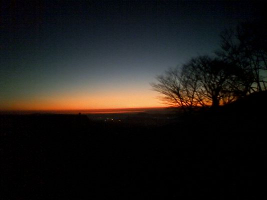 今朝の朝焼けはキレイじゃったとうとう、出勤時間になっても、お日様が出なくなりました。反対の空は、満月と星がでていましたよ。そして、今夜もストーブの前でポヨポヨしております