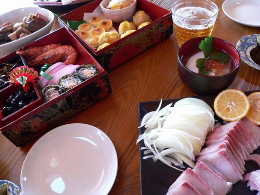 明けまして、おめでとうございます今年も宜しくお願いします。昨夜は寒かったよぉ~マイナス5℃ サビぃ~デッキの木もパキパキっていってて、凍っていた今年の初日の出写りがよくないケド、気分気分おせち食べるぞぉ~今年も応援宜しくお願いします