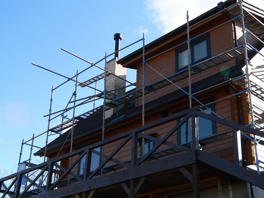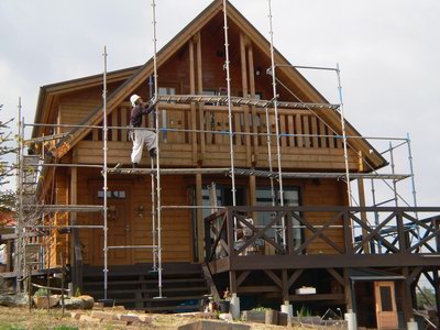 我が家のログハウス壁ヌリヌリ状況ですが完成に向けて今週である程度のメボシが付く予定でしたが・・・土曜日の昼からの雨と、友人とので はかどらず・・・足場の撤去はもう一週間延期になりそうですこちらが塗装着手前です。こちらが現在の様子、違いがわかりますかあと、窓枠や破風板の2度塗り目と壁の日が良く当たる面の3度目を塗りますあずきもぺンキにまみれていますおしりとシッポの辺りに緑のペンキが・・・この調子だと、家の塗装が完了する頃にはあずきも迷彩柄になって、どこに潜んでいるか不明になるかも今日も見てくれてありがとうポチッと応援よろしくです