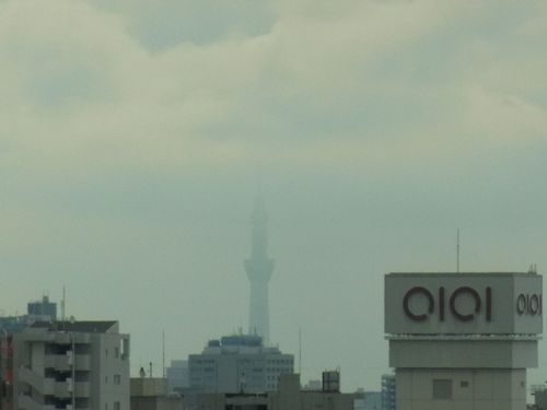 上のほうが雲で見えないことはよくあるけど、今朝のスカイツリーは下のほうが霧で見えなくなっていた。こんなこともあるんだね。