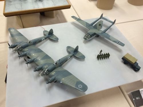 今年も無事に終了しました。来場いただきました皆様、ありがとうございました。今年の展示品をかいつまんで紹介します。ハセガワ 1/72 He111z + イタレリ Go242。He111zは、プロペラが順次起動します。ミニクラフト 1/144 E-3 AWACS。レーダードームが回転します。エアフィックス 1/144 A300。元操縦士が見学にこられて、ビビりました。主翼の工作で一部間違いを犯したのを、見事に見破られました。ここからは、私の作品ではありませんが、注目の作品を紹介します。レベル 1/72 エアバス A400M。最新のミッションインポッシブルで、トム君がしがみついていた飛行機です。1/72 B-52。ピカピカの光沢仕上げですが、すべて塗装です。