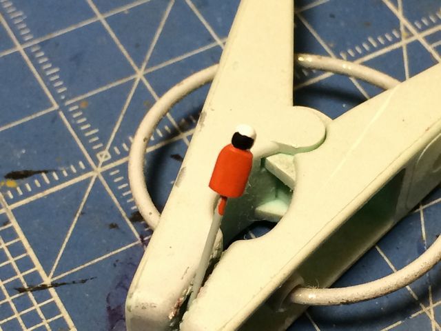 1/144 E-2Cに乗せるパイロットフィギュアを作成。なんて偉そうに言ってますが、ランナーから削り出した「こけし」です。一応、それっぽく塗り分けだけはしてあります。オレンジ色で正解かどうかわからないけど、目立つほうがいいかなと。コクピットに乗せたところ。キャノピーを付けてしまうと、ほとんど頭の部分しか見えません。ということで、こんなもので十分なことが証明されました。