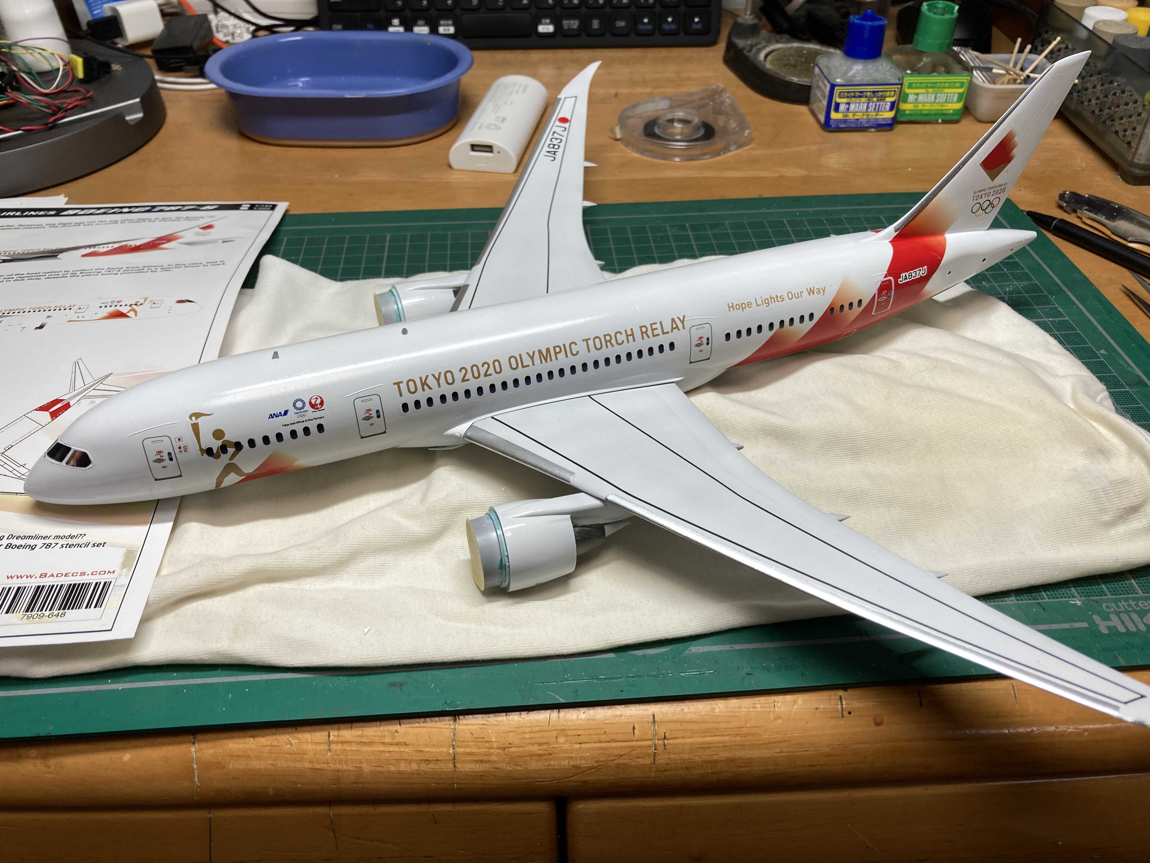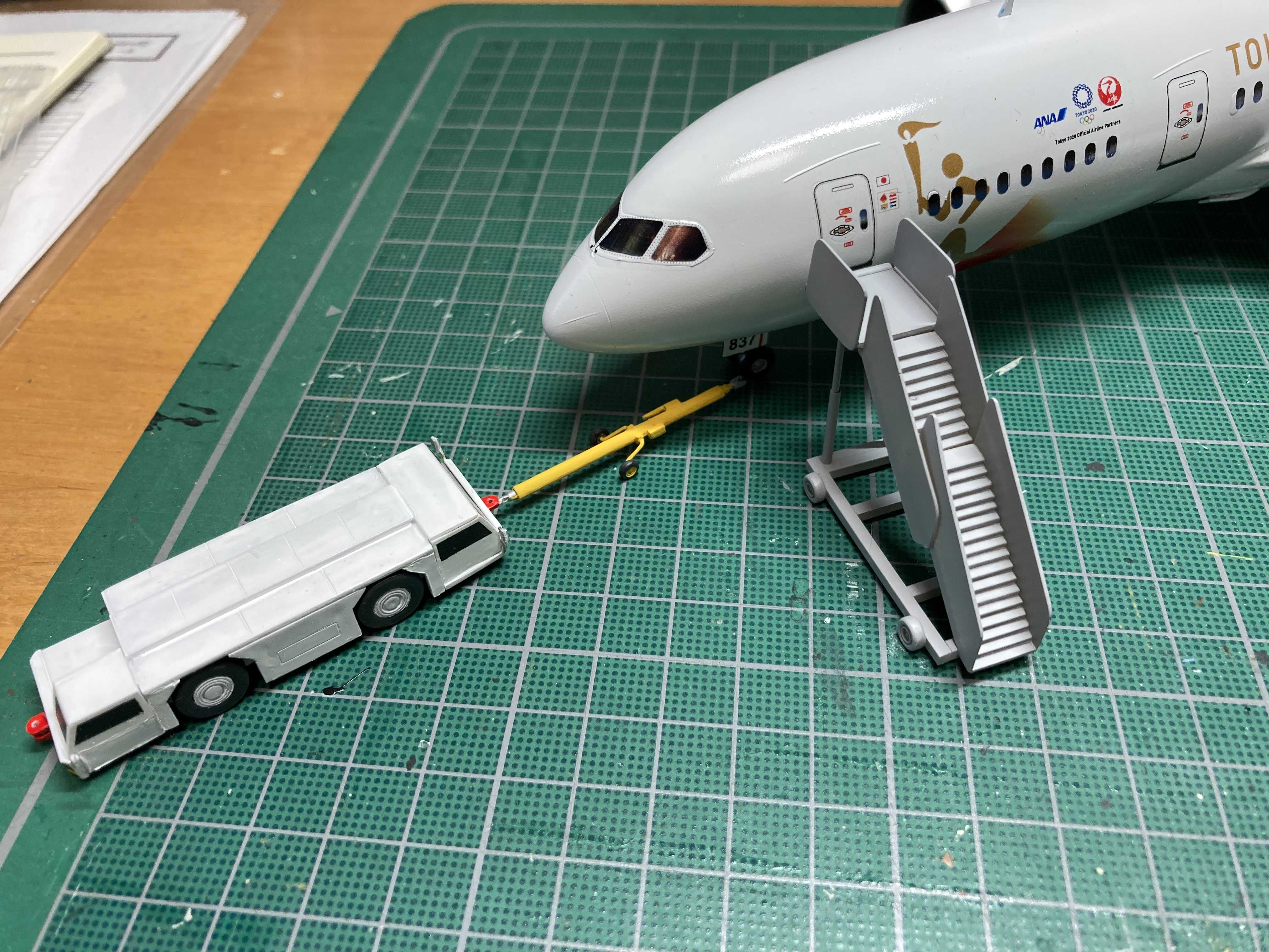 787五輪トーチリレー機に付帯設備を追加しました。タラップは、BRA.Z製レジンキット。トーイングカーは、Eastern Express製インジェクションキット。タラップは、これから塗装します。