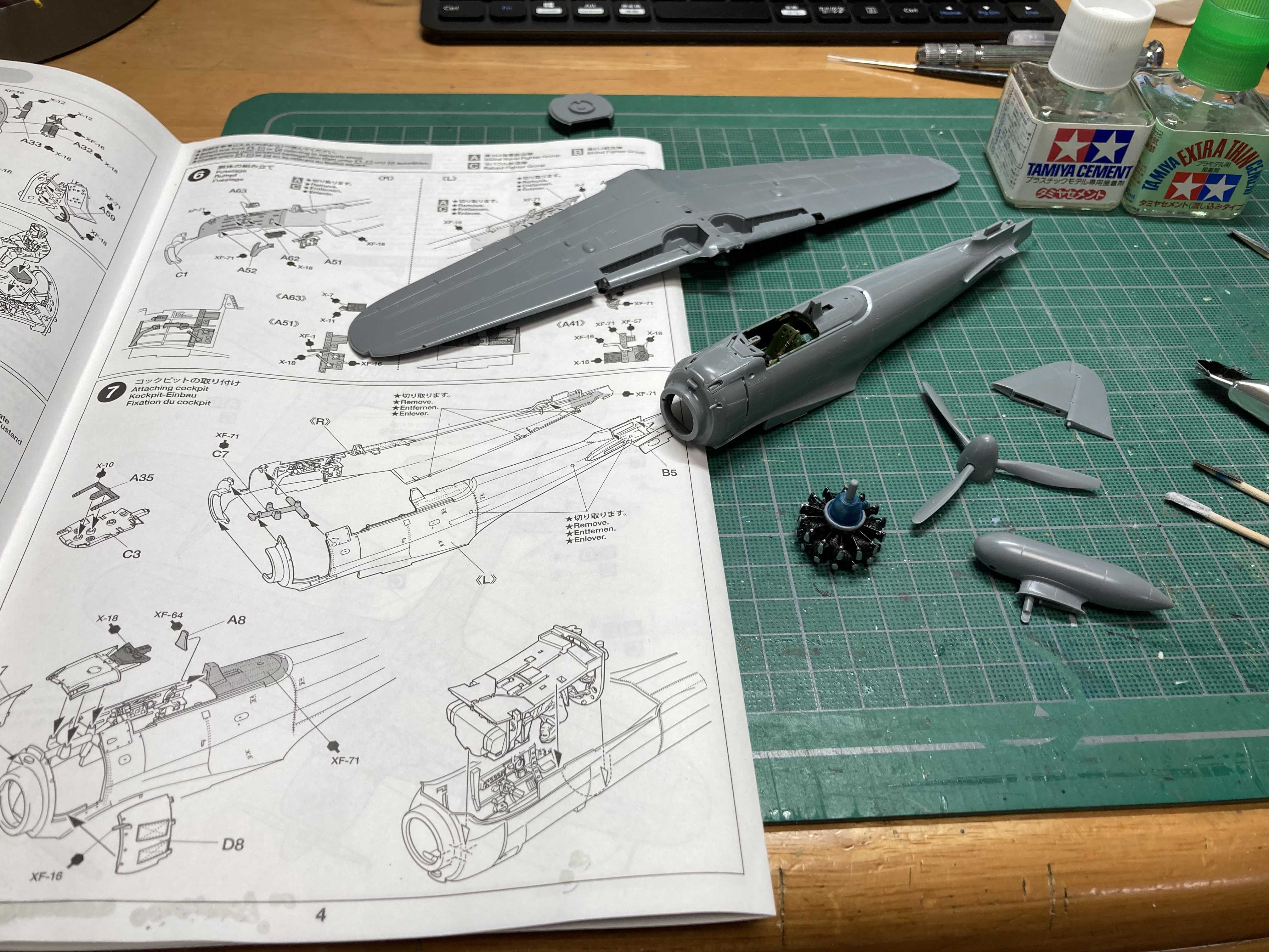 怒涛の展示会ラッシュが終わったので、お手付きだった、タミヤの1/48零戦52型を再開しました。さすがのタミヤ、サクサク組めます。