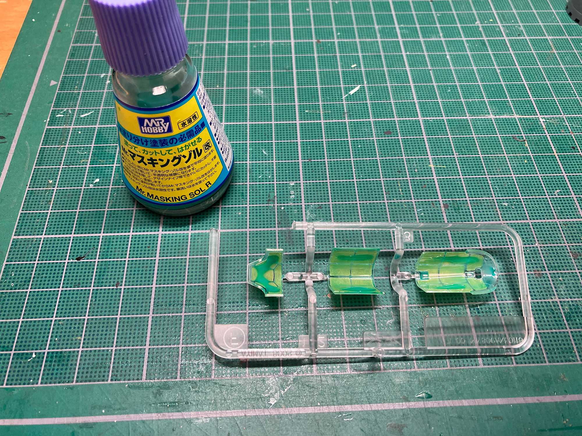 エアブラシ塗装で裏側に吹き込まないように、裏側にマスキングゾルを塗って保護します。