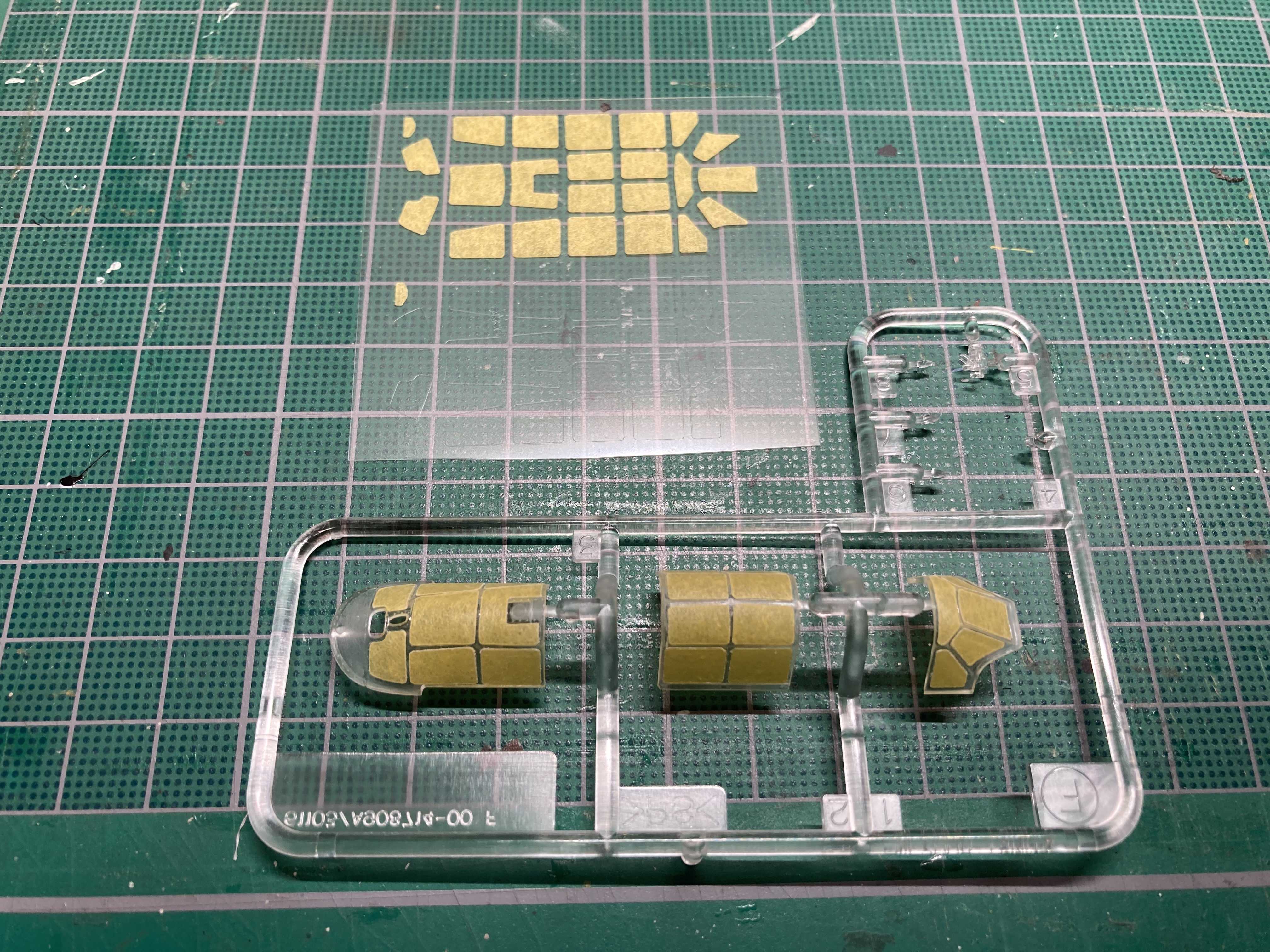 ゲートの位置がキャノピーの開口部にあるので、ランナーに付けたままでマスキングし、このまま塗装する予定です。