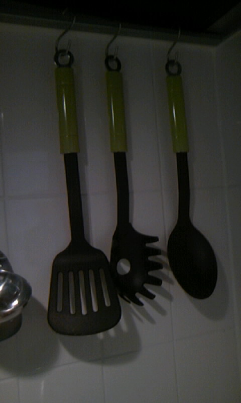 キッチン回りは、ライムグリーンの小物。Joseph Josephのまな板は、切った具材をこぼさずにフライパンやお鍋に入れる事ができる、優れものです(^-^)v