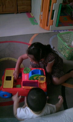 夕飯の支度を始める頃、JasmineがHollyを見てくれます。二人で遊べるようになると、楽ですね~d(^O^)b 紙芝居を読んであげている姿は大きいお姉ちゃんのようでした(*^_^*)