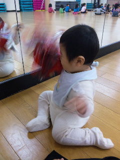 Jasmineねえねのチアダンスを久しぶりに見学。見てるだけじゃ嫌!!とHollyはノリノリ鏡の自分に笑いかけたり、話しかけたりしてました