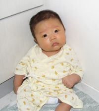 (写真:パパがコーナーで撮ったので、首が座ってるかのように見えますが、さすがにまだ座りきっていません。パパはこの写真を私に見せて「何てことするの!」と叱られました。(笑))
