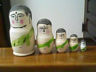 明日はおなもみのお誕生日~~☆毎年変わったお誕生日プレゼントをリクエストするおなもみ。数年前には、『着物』 とかいうのもあったなあ・・・妹と、問屋さんに買いに行ったっけ・・・着物・・・灯籠や仏像が大好きな、純、『和』 を愛するおなもみの今年のリクエストは・・・>>こちらのロシアの国のお人形昨日、宅配便で届きました。(いつもお世話になっていますロシア雑貨のお店 ルイノクさまから)今日は、ラッピングの紙を買いに行かなくっちゃ☆去年のクリスマス、サンタさんにもマトリョーシカをもらいましたが、おなもみのマトリョーシカブームは、まだまだ続いています。いつまで続くでしょうか・・・(今年もサンタさんにマトリョーシカをもらう と言っております・・・)その、サンタプレゼントのことを書いた日記のコメントで、wind・JOYさん に教えていただいたのですが、マトリョーシカは ”箱根の七福神の入れ子のお人形” が起源なのだそうです!ちょっとびっくりです~~~\(◎o◎)/!おなもみが仏像のマトリョーシカ作ったのも、あながちヘンじゃなかったのカモ・・・ ↓ あながち、ヘンじゃない? ・・・やっぱりヘン?? で、昨日届いたマトリョーシカは、おなもみがず~~~っと欲しがっていたもの。一時、売り切れていて、ガッ|||||||||||||( ̄ロ ̄;|||)|||||||||||||ビーン となっていたおなもみでしたが、今回、また再入荷したのか売り切れ表示が消えていて、「おおおお~~~!やったね☆☆」 と、即注文しました。(おなもみが注文したあと、また売り切れ表示が・・・)さて、話が全く変わりますが、月末は何かと忙しくしておりますぴあの、ホントは日記なんて書いているヒマないのですが、一応、明日はおなもみのお誕生日でもあるし、何か、お誕生日のことを文章に残しておいてやりたい と思いました。(*^▽^*)半年ほど前から、屋久島ナチュラルヒーリング のHPで、月に一度、『水晶祭り』 というのをやっています。水晶祭りとは・・・ という説明は 長くなるのでおいといて・・・とにかく、水晶のお祭りなのですよ~~~ きれいよおおお~~~~o(≧∇≦)o次の水晶祭りは2月2日。水晶祭りページと水晶のスライドショーを作製するのは、この私。昨日から、ただ今作製中なのですが、これがいつも結構大変。o(><;)(;><)oそれから、月末は、同じく、ナチュラルヒーリングの DL壁紙カレンダーの更新があって・・・これも、た・・・大変・・・_| ̄|○ (今回の水晶祭りの水晶たちが、これまた綺麗です。)(クラクラしながら作製しています。)そんなこんなで、2月の始めまで、とてもとても多忙しますっ(>_