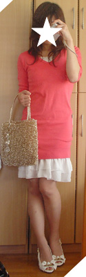 中学時代の同窓会でした。とは言っても20人くらい?まぁ大規模なのはめんどいからな…別に幹事やるわけじゃないけど。(じゃ言うな)☆・,。・:*:・゜'・☆・,。・:*:゜'・☆・,。・:*:・゜'・☆・,。・:*:゜'・☆・,。・:*:゜'・☆・ロングニット (INGNI)・白ペチワンピ (サルース)・ワイヤーバッグ (COOCO)・リボン付オープントゥパンプス (ノーブランド)・リボンネックレス (パリスキッズ)・ハートピアス (ノーブランド)☆・,。・:*:・゜'・☆・,。・:*:゜'・☆・,。・:*:・゜'・☆・,。・:*:゜'・☆・,。・:*:゜'・☆何を着ていくか散々迷ってコレですよ…自分的に不発でした…orz髪はゆる巻きで下ろしてました。ネックレスは大振りなペンダントにすればよかったなぁと思ったけどごちゃごちゃ迷ってたら家を出る時間になったので適当です…うがーーーーーーーーッッ!!まぁいいや。過ぎた事だしな。超ネガティブな私にしてはめずらしくポジティブシンキン!!(笑)