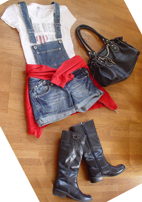 本日2回目の日記です。良かったら前のも見てねー・・・・・・・・・・・・・・・・・・・・・・・・・・・・・・・・・・・・・・・・・・・・・・・・・・・・・・・・・・・・・・富士急ハイランドに遊びに行ったときのコーデ。☆・,。・:*:・゜'・☆・,。・:*:゜'・☆・,。・:*:・゜'・☆・,。・:*:゜'・☆・,。・:*:゜'・☆・ラインストーンロゴT (ノーブランド)・デニムサロペット (しまむら)・赤パーカ (ine)・ハート&キーチャーム付バッグ (メリービアンンコ)・ジョッキーブーツ (prompromshop)☆・,。・:*:・゜'・☆・,。・:*:゜'・☆・,。・:*:・゜'・☆・,。・:*:゜'・☆・,。・:*:゜'・☆歩いても疲れないカッコ、汚れてもいいカッコ、…と考えてたらこれに。一つ残念なのはブーツが激しく合ってねぇorzだってぺたんこブーツってコレしかなくて…スニーカーでも良かったけど日焼け面積増えちゃうし…パーカは着てました。室内のときは腰巻したけど。ってニーソックスにスニーカー履けば良かったんジャン!!今頃気づくなヴォケーエンジニアブーツかニットブーツを買っとけば良かったと(TДT)ヘアは白シュシュでカジュアルなハーフアップにしてました。