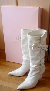 先月かな?オクでレベッカのブーツ落札しました♪いつのモデルかはわかりませんがエビちゃんが雑誌で履いてたとか。(それは落札後に知ったんですけど)春ブーツに♪と思って今年頭に買った激安白ブーツが撃沈だったので白系でレディカワなブーツならブランドこだわらねー!!と思ってコレです。たしか5千円もしなかったかな?安ー!!普段23cm履いてますがこのブーツは24cm。レベッカは作りが細みなのでちょうど良かったです(^▽^) ただの幅広…?かわいくて気に入ってますがまだ一度も履いてません。多分履かずに来年までもってきそうな予感…着ない服とかブーツとかオクに出したいけど画像準備が面倒だ(>д<)って前にもこんなこと言ってたな…