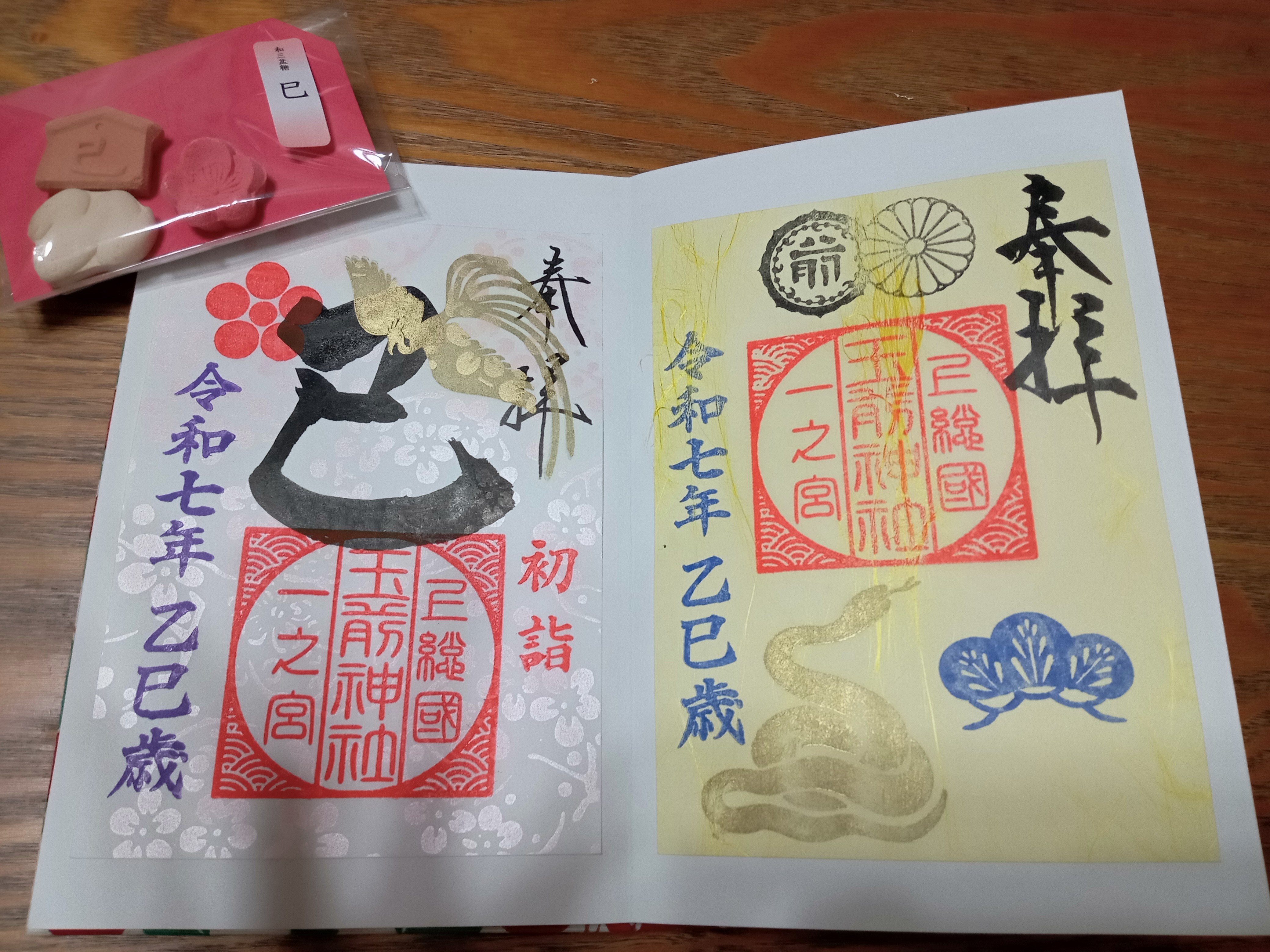 仕事が始まり、職場の先輩と初詣に行くことに🚗³₃せっかくなら、ご飯も食べられて…ちょっと遠出✨ならば玉前神社に行ってみましょうとなりました。平日でしたが、結構御参りの人がきていました。私はお参りの後、お正月の御朱印を購入し、干支の土鈴も購入⛩今年も無事元気に過ごせればと改めて思いました。さて、帰りの食事は九十九里浜に足を伸ばし焼き蛤😋🍴子供たちには不評で、ずっと行きたいと思っていただけに嬉しい♥️と大喜びで食べました。付き合ってくれた職場の先輩に感謝です。