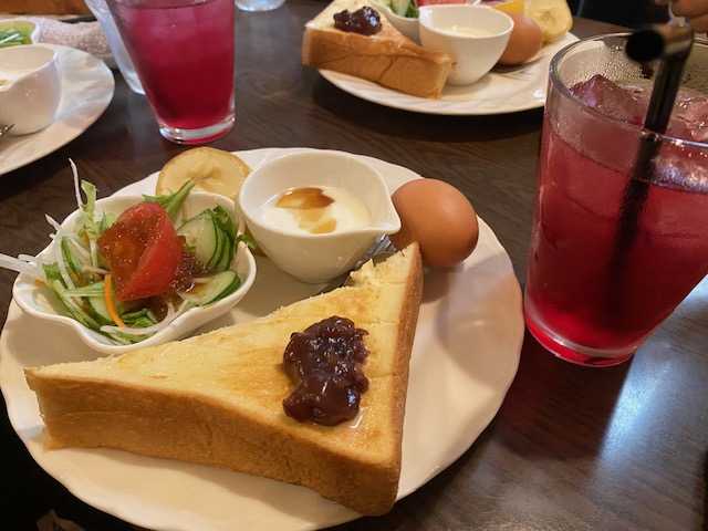東海地方のモーニングをテレビでよく取り上げていますが、私たちも今週は早朝7時か7時半から出かけ、色々と違うメニューを楽しんでいます。今まで訪れたことのない喫茶店へ行きました。すると出てきたのはサンドイッチとみそ汁の組み合わせでした。味噌汁は具沢山でした。豆腐、油揚げ、なめたけ、もやし、人参、わかめが入ってました。最近は卵の高騰でどこの喫茶店も赤卵から白卵にかえられてますが、ここの喫茶店は赤卵のままでした。またサンドイッチではなく、おにぎりを選ぶこともできました。こちらの喫茶店では串団子が付きました。写真は撮れませんでしたが、後で茶碗蒸しが出てきました。コーヒーとトーストだけのモーニングよりは卵が付く喫茶店に行くことにしています。お盆の間は静かににじいろ会のストラップを作ることにします。相方が協力してくれるので助かります。二人で作業を分担していますので、頑張ります。庭のプランターに植えてある向日葵の葉っぱがだいぶ枯れてきました。種を採るまでそのままにしておこうと思っています。H 先生の畑では大きな向日葵の葉っぱが枯れて茎が折れているのもあったので、まだしばらく放置しておいてもよさそうです、