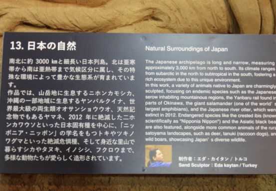 いよいよ砂の美術館も最後になりました。鳥獣戯画の世界です。すみません。ぶれました。「17. 第二次世界大戦と高度成長」です。こちらも「18.日本のポップカルチャー」です。最後にもう一度、最初に紹介した日本神話、国生み・神生みに戻ります。8つの顔を持つヤマタノオロチの横の階段は遠近法を使って、オオクニヌシを祀る古代の出雲神社(高さ48m)の長い階段が作ってありました。2階から全体像を3か所眺めました。こんな感じで砂像が作られています。これで砂の美術館を終わります。・・・昨夜、オーストラリアの御一行様のフェアウェルパーティーが開かれました。午後5時半に集合して委員会メンバーは会場のセッティングをしました。食事とお菓子、飲み物の買い出しと準備もしました。そして午後6時頃みんなが集まってくると、オーストラリアの11名に浴衣の着付けをしました。一人だけ着ない男子がいましたので。そして午後6時半からお別れ会が開かれました。今年は大勢で約百名の参加者でした。二人が声をかけてくれて、記念写真を撮りました。前日刃物屋さんで一緒だったので親しく感じてくれたようです。盆踊りと記念写真です。にぎやかに楽しくダンスやピアノ演奏、ゲームなどを楽しみ、最後に盆踊りで締めくくりました。ちょうど9時になり終了しましたが、みんな別れを惜しんでなかなか帰ろうとしないので、かなり遅れてしまいました。私たち委員会メンバーは食事や飲み物を片付け椅子や机を片付け、フロアの掃除もして何もかも残さずきれいに片づけて帰りました。