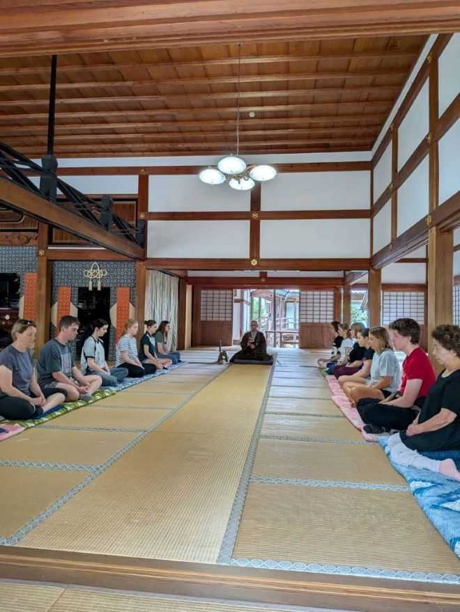 オーストラリアから当市を訪問している派遣生と引率の御一行様は10月3日(金)に正眼寺を訪問して、アメリカ人の僧侶から説明を受けました。山川老師様がお忙しくてお留守なので。私たち委員会のメンバーも同行しました。まず座禅を組みました。そして全員で念撮影。お茶を頂き庫裏へ案内され、お鍋がたくさん並んでいるところで広い粗末な台所で大勢の食事の用意をするのも修行の内だと言われました。メンバーが動画を撮ってきてくれたので耳を傾けて聞いたらそんなようなことをおっしゃってました。そして外に出て、また説明を受けました。アメリカ人のお坊さんの英語は聞き取りにくかったですが、大体言われていることがわかりました。動画は一部分だけでしたが2時間もの長い間、メンバーは英語漬けだったようです。その後、美濃市のうだつの上がる街並みの見学に移動したそうです。美濃市で紙すきの様子を見学したようです。また剣道の体験もしたようです。・・・そして昨夕は午後5時半集合でウェルカムBBQがありました。これには私も参加してにぎやかな時間を過ごしてきました。その様子です。私は皆さんから集金する係とお肉や野菜を焼く係でした。なぜか若者たちも私たちのところに集まってきてにぎやかにおしゃべりをしたり歌を歌ったりして楽しそうでした。BBQが終わってもみんなはなかなか別れがたくおしゃべりが続いているので失礼してきました。自宅に帰ったら午後9時でした。