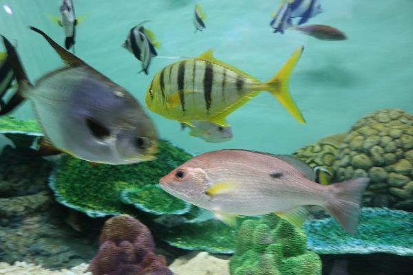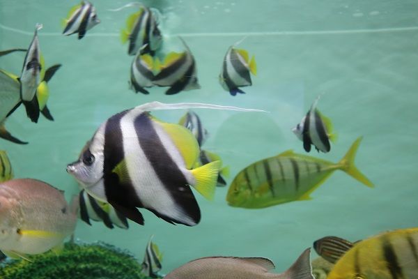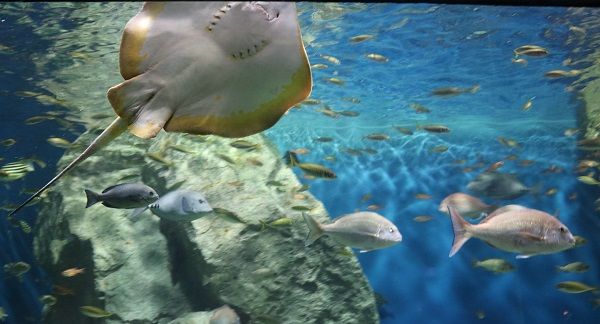 大水槽にはたくさんの魚が悠々と泳いでいました。