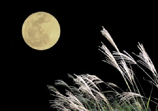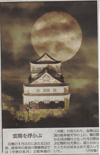 岐阜城と金華山の山陰、中秋の名月のコントラストが
